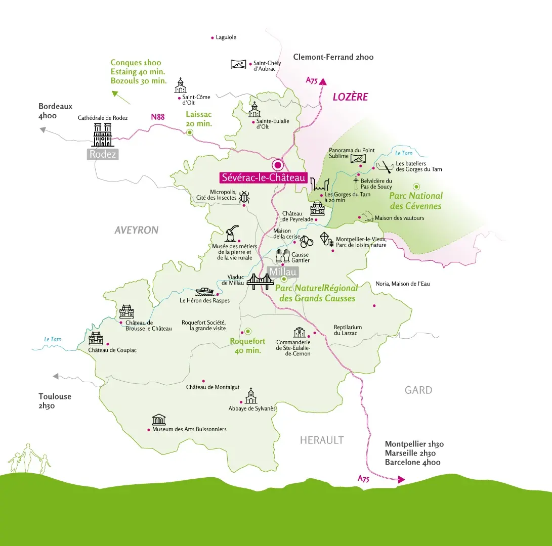De Clermont-Ferrand : A75 – Sortie 42 direction Sévérac d’Aveyron