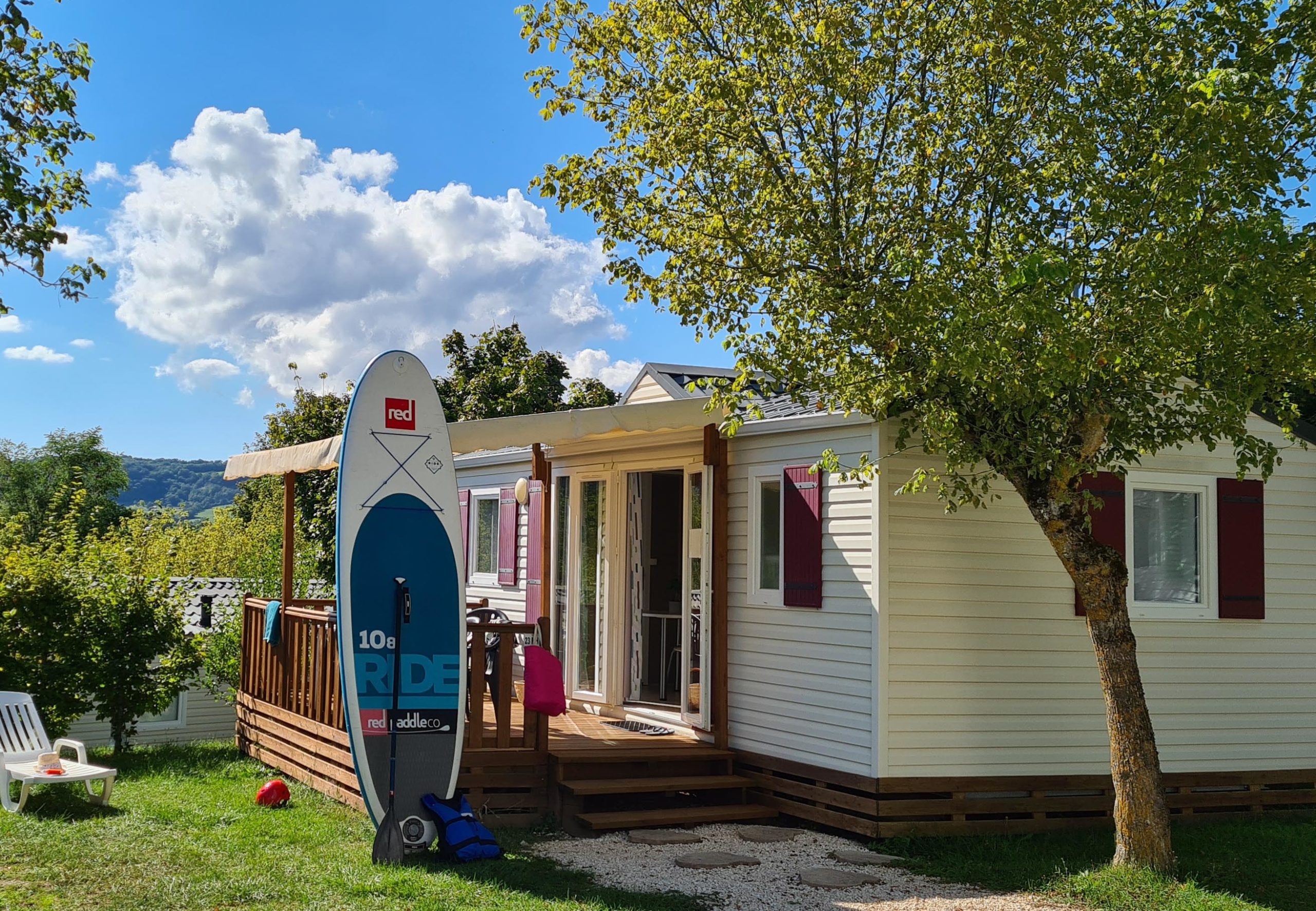 Le camping 5 étoiles des Calquières vous invite à louer un mobil-home à 45 km de Meyrueis. Dans un cadre naturel privilégié, vous pourrez séjourner dans un hébergement à la configuration parfaitement adaptée à vos besoins : un mobil-home à deux chambres pour vos vacances en couple avec ou sans enfants, un mobil-home à trois chambres pour vos séjours en famille, et même avec canapé-lit supplémentaire pour les familles nombreuses ou petits groupes d’amis. Avec 27 à 32 m2 de surface, nos mobil-homes près de Meyrueis comprennent une petite cuisine équipée, des sanitaires, un salon avec télévision. En extérieur vous attend une terrasse couverte ou semi- couverte. Faites le choix de la gamme qui convient à votre budget et qui satisfait vos exigences de confort : certains de nos mobil-homes disposent d’un lave-vaisselle dans la cuisine et d’une literie large dans la chambre parentale. Opter pour un mobil-home tout confort vous permet aussi de bénéficier du Wifi sur plusieurs appareils. En famille ou en couple, louez votre mobil-home à 1 heure de Meyrueis au camping des Calquières et passez des vacances inoubliables. Envie de plein air et de vacances au vert ? Réservez votre bungalow toilé ou votre lodge aux Calquières et passez un séjour insolite et nature près de Meyrueis!