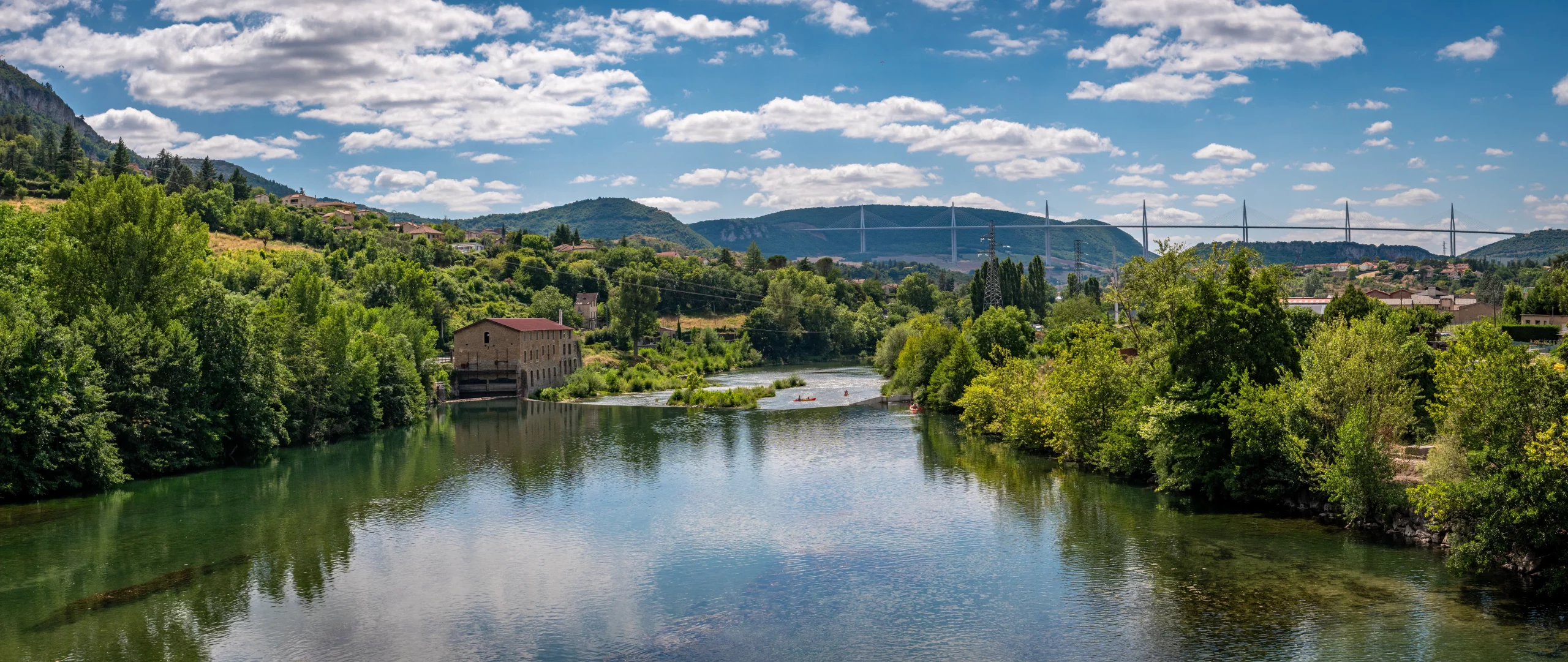 Situé à une demi-heure en voiture du camping, à environ 50 km au sud de Sévérac-le-Château, le viaduc de Millau est l’un des plus beaux ponts à haubans de France. Mesurant près de 350 m de long, il enjambe la très belle vallée du Tarn et est facilement accessible par la Méridienne (A 75).