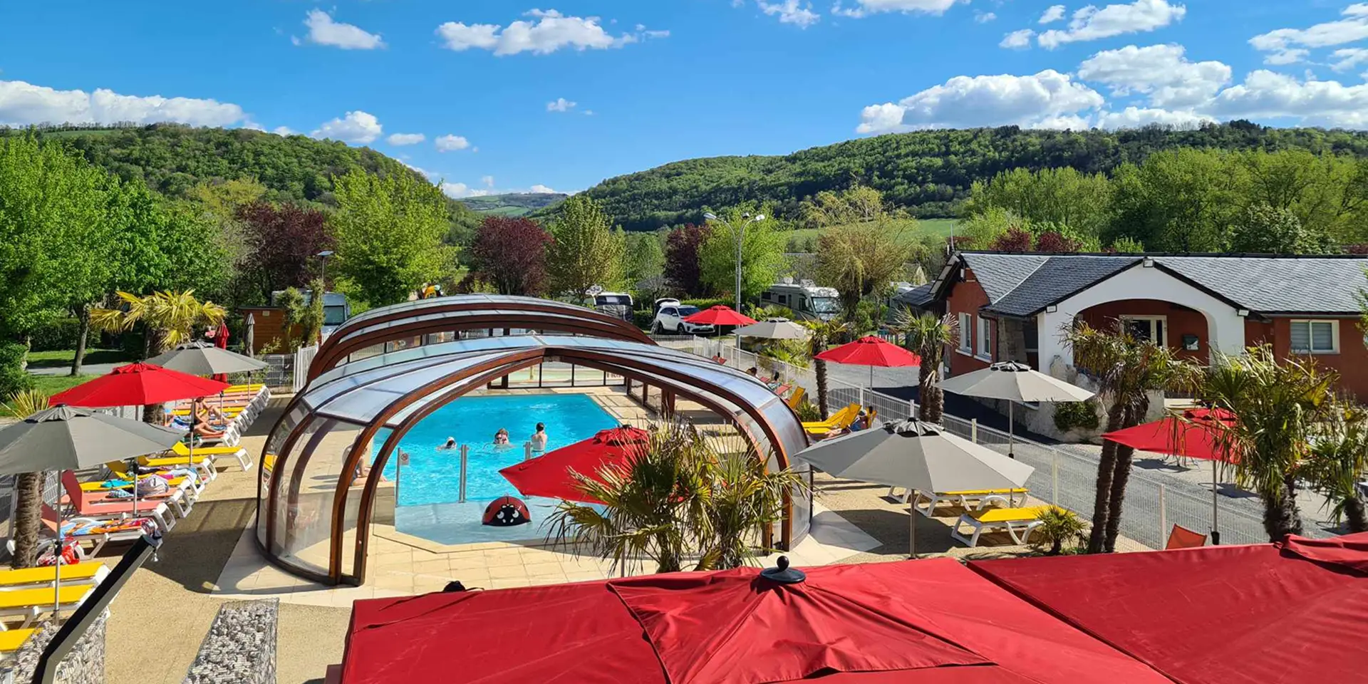 Les Calquières welcomes you to a verdant setting at the gateway to the Tarn gorges. This 4-star campsite in Aveyron has an indoor and outdoor swimming pool, heated from April to September 15, with a ladybug paddling pool with water jets, and an outdoor paddling pool with water games open in high season. In summer, numerous water games and sports activities are organized for the enjoyment of holidaymakers. On site, you’ll find a restaurant with a panoramic view of the pool, and a bar equipped with a screen showing major sporting events.