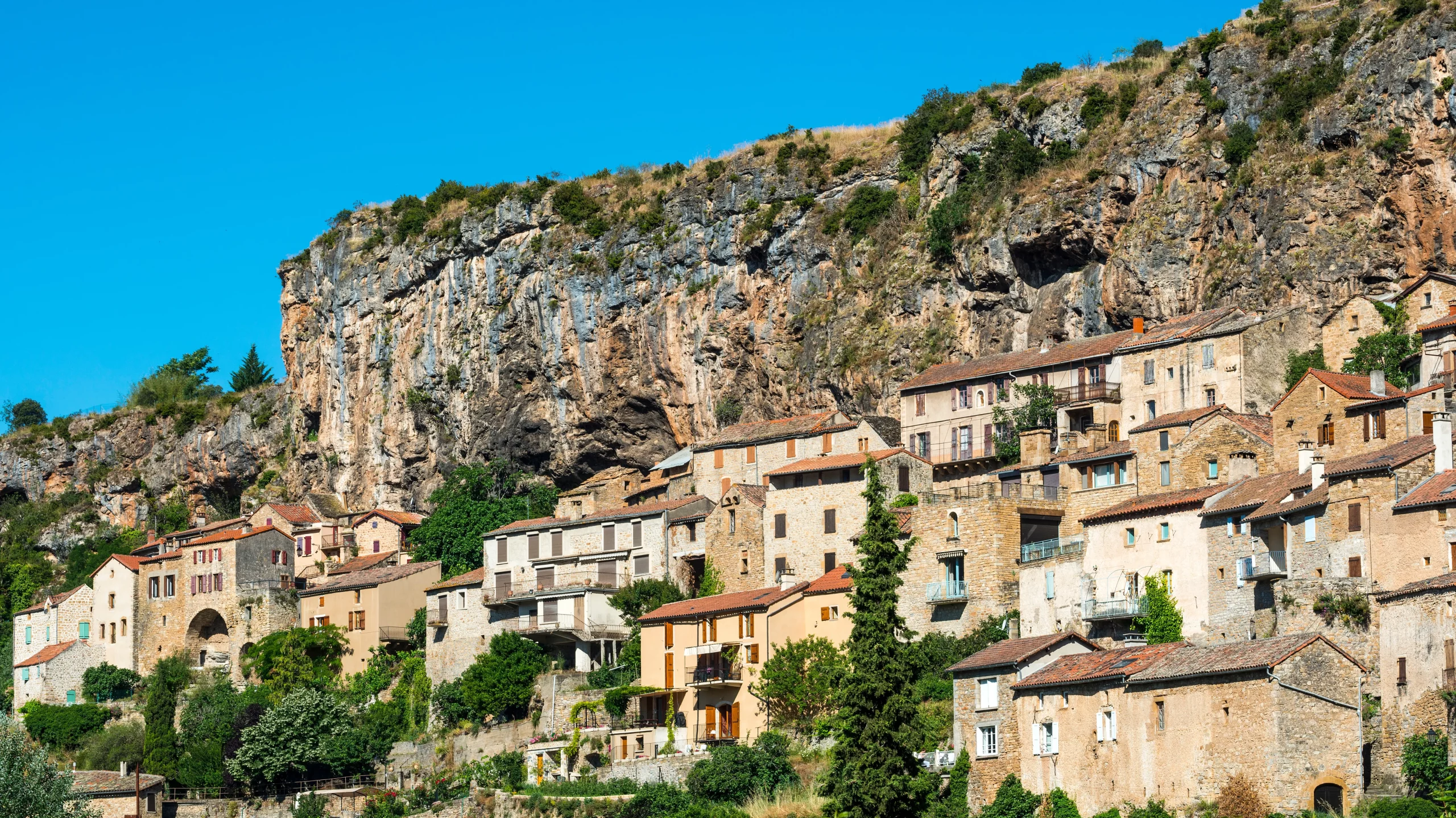 Un village troglodytique unique, accroché à la falaise et dominant le Tarn dans un cadre spectaculaire.